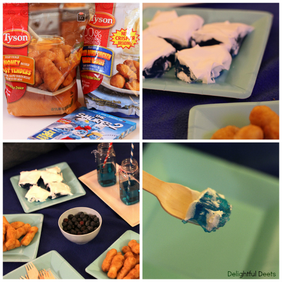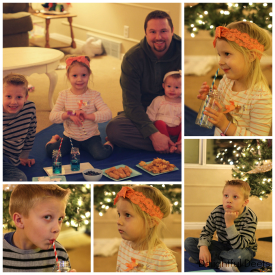 We tried to add blue to our dinner to see if we’d wake up as a Smurf in the morning. It added to the hype of the evening and when dad walked in the kids were dragging him to see the blue juice and the blue jello. We asked them to find other blue stuff and they came back with blue straws, blue twine, a blue blanket and blue plates.