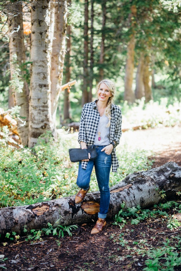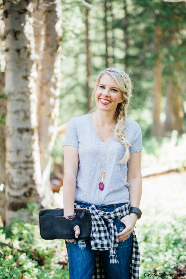 This outfit is a favorite of mine. I didn’t have to try super hard before running out the door, but added some color in accessories and it looks more dressed up. Wrap a flannel around your waist or wear it and you’re good to go.