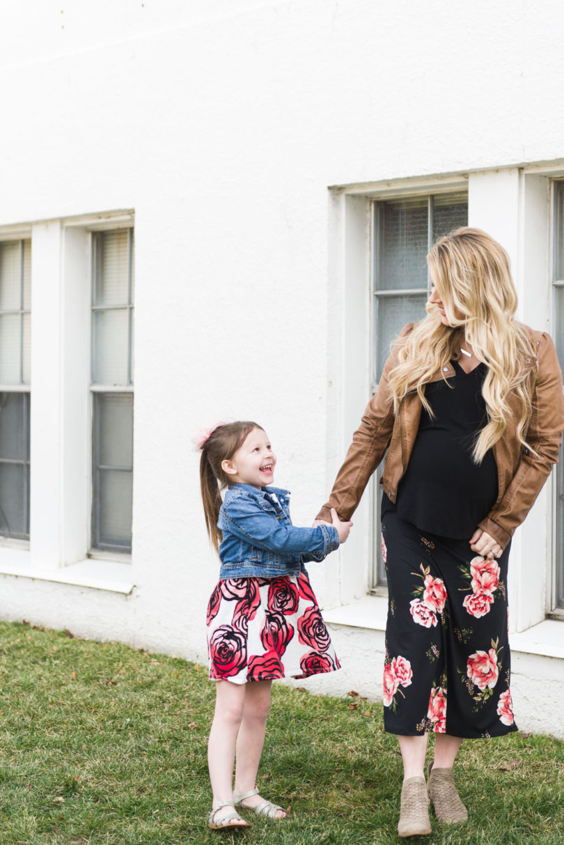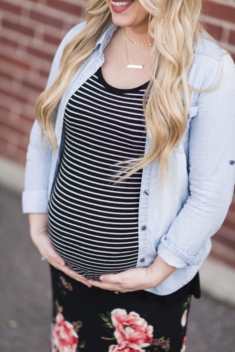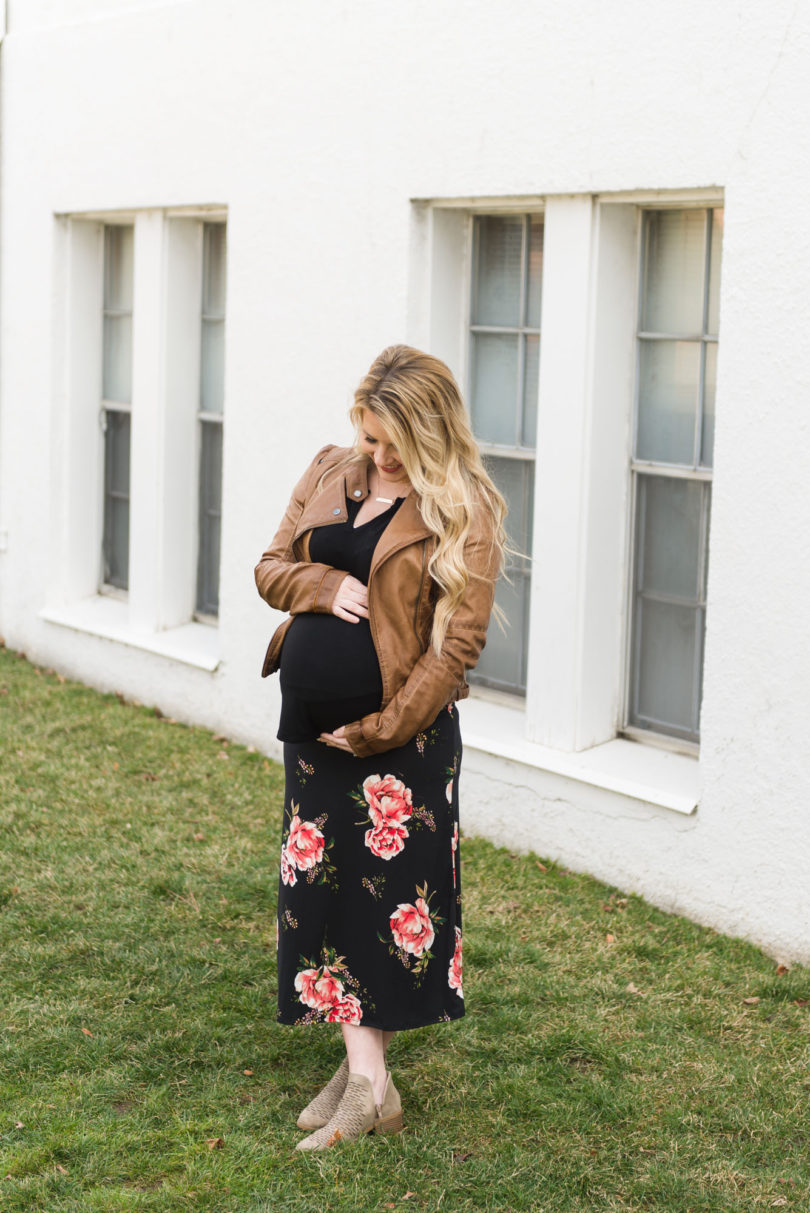 If I’m being completely honest, dressing my body while pregnant is a struggle. I struggle putting on the weight. I struggle getting rid of the weight. I struggle with how puffy my face gets and it’s hard seeing pictures of my not pregnant self, knowing that I can move quicker & maybe even chase my kids around. I struggle when the body swelling starts. I get sad when my jewelry has to be taken off my fingers. I think it’s funny how close I need to be to a bathroom. I feel like my toddler sometimes.
