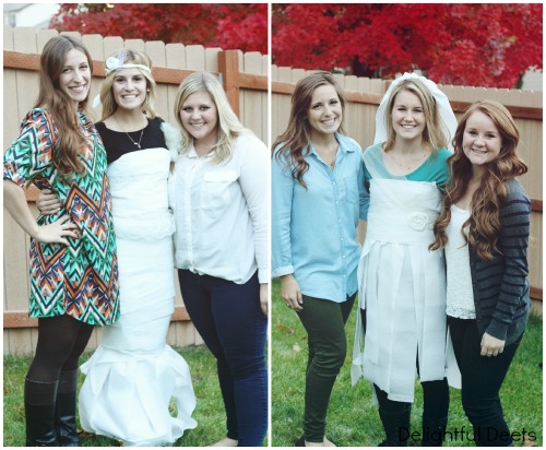 I had them make wedding dresses out of the toilet paper. I gave them tulle, netting, and lace that I had lying around.