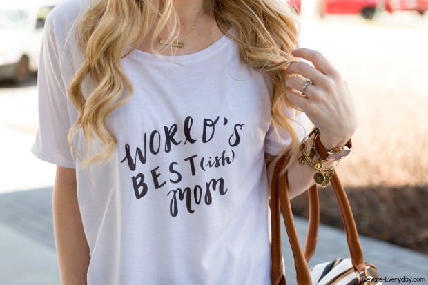 I got my mom tee in the mail and I’d kind of chuckle to myself and think, “Yeah, I’m the best (ish) mom when I can keep my patience in check, or when I concentrate on being a good mom for 5 minutes, or when I am on time once in a blue moon, or when I actually remember to help my kids with their homework, or feed them a home cooked meal a few times a week, or if I don’t have to be reminded to actually do the laundry.”