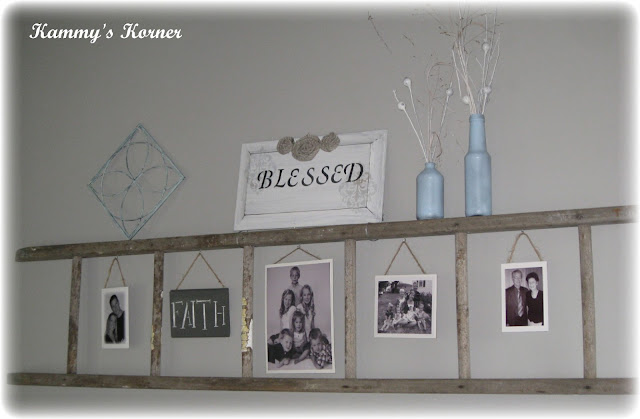 I love this ladder idea from Kammy’s Korner! The whole presentation is so darling! Has anyone in Southern California been able to find stuff like this? (rustic ladder, antique window or door) Tell me where I need to be looking!