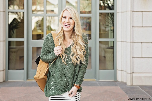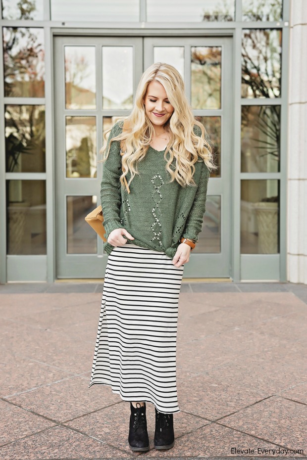 Love how you paired the stripes and olive sweater. The knot was pretty brilliant!!!