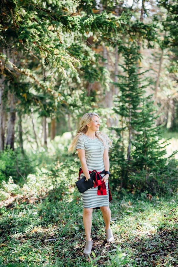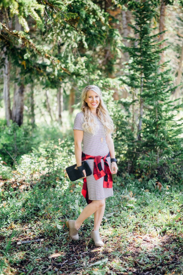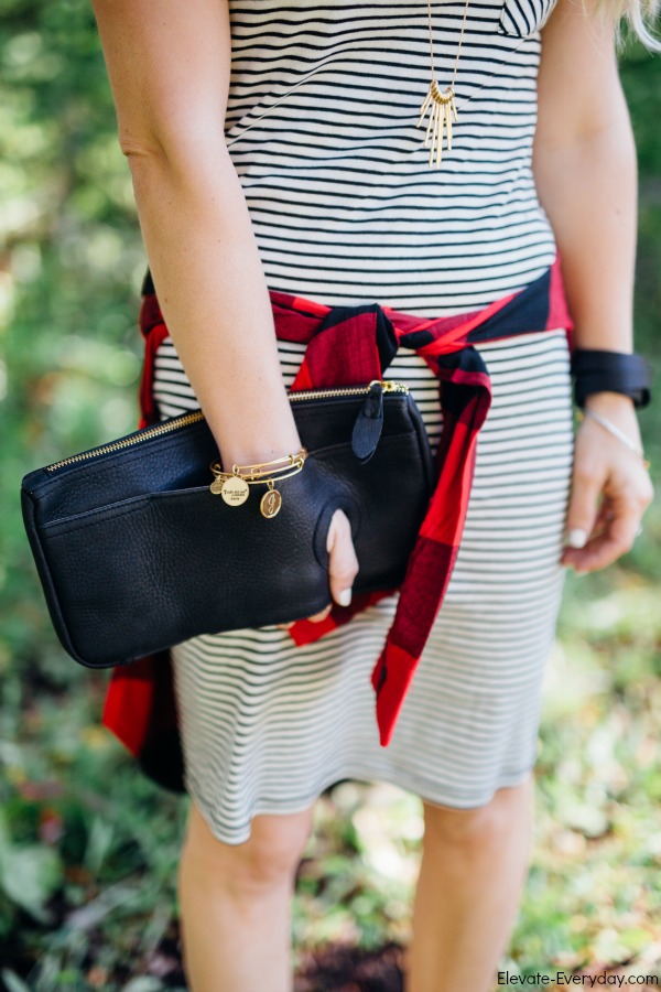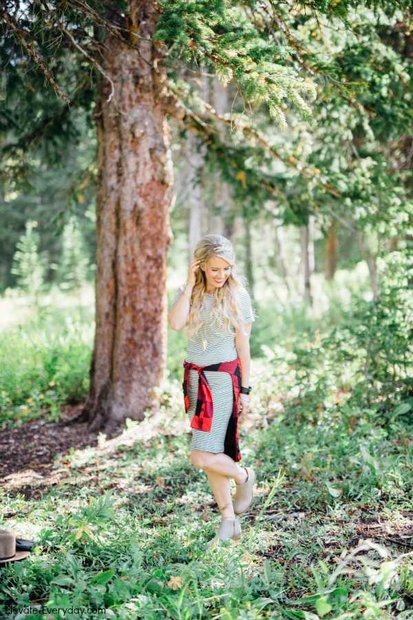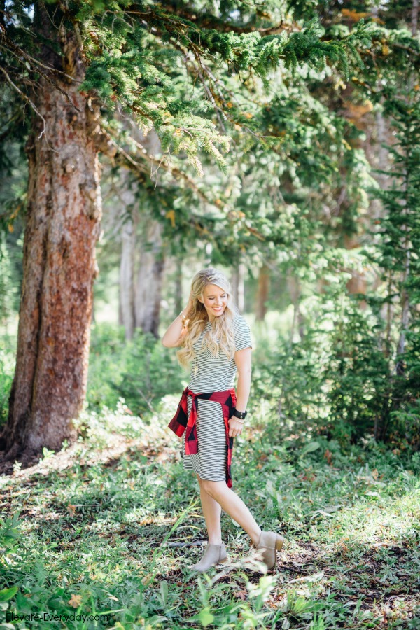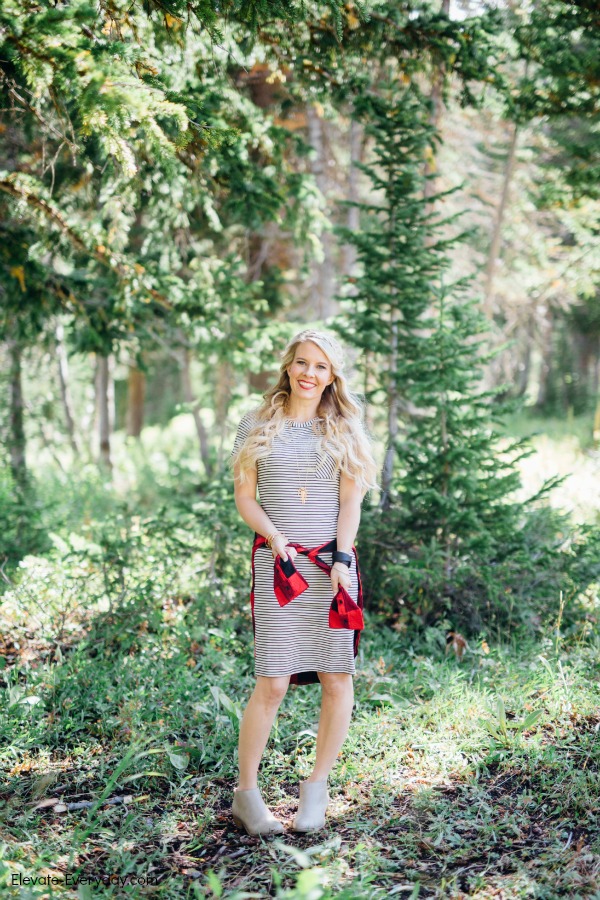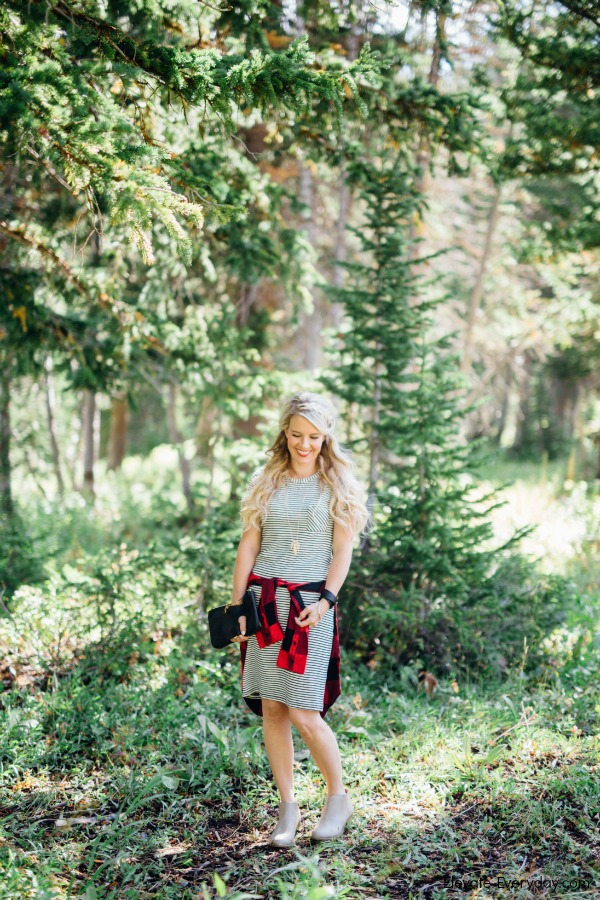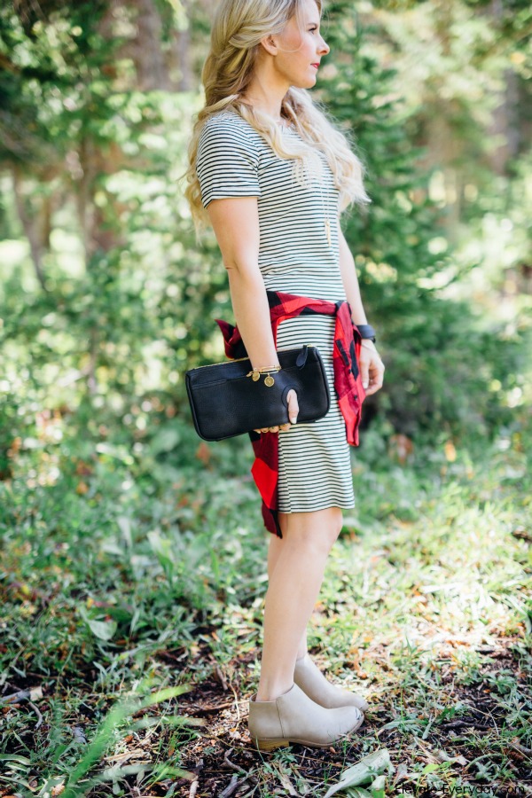 I’m obsessed with this outfit! Mixing these patterns of skinny stripes and buffalo check is pretty much my new favorite.