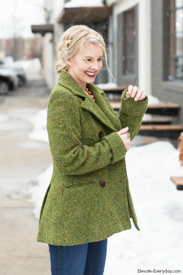 I got this coat years ago from Victoria’s Secret, do they even carry clothing anymore? I didn’t think it would match with much, but because it is multi colored it goes with a ton! If it’s still cold around St Patrick’s Day, I’ve got my outfit planned!