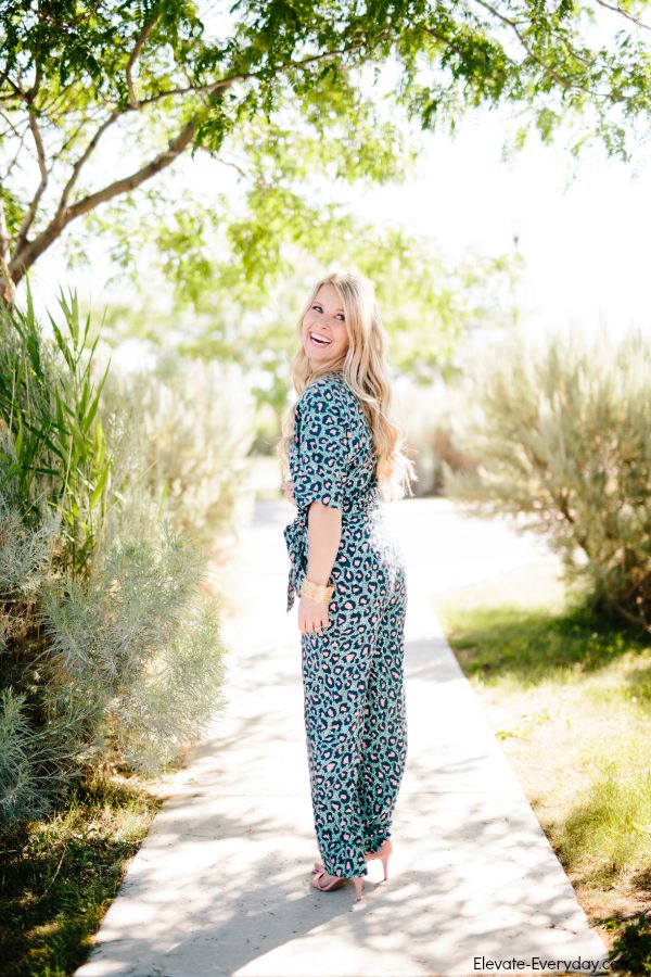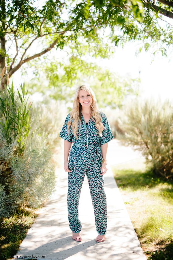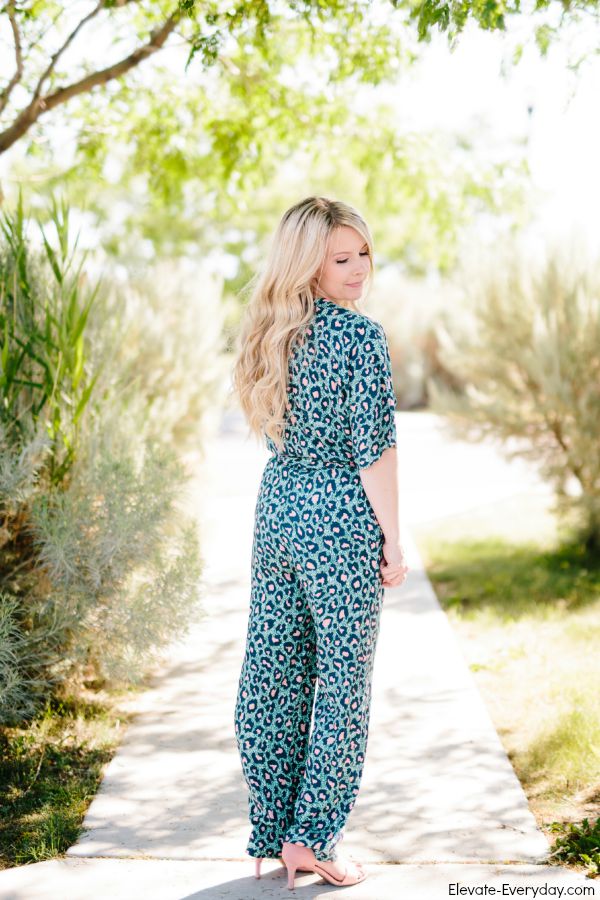 This romper is so comfy and I love that I can move around in it, but that it is also dressy. Navy, teal, and pink might be my new favorite color combo!