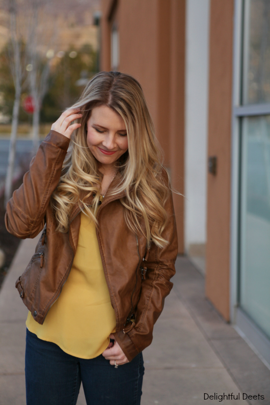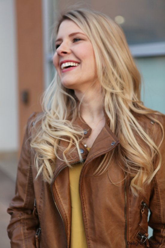 Yay for spring! I think we are all SO ready! I love that leather jacket so much – it’s such a great color to transition into the warmer weather.