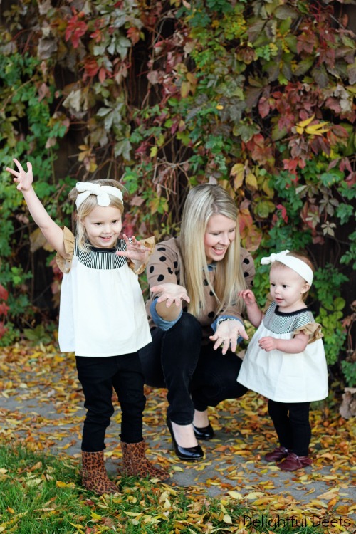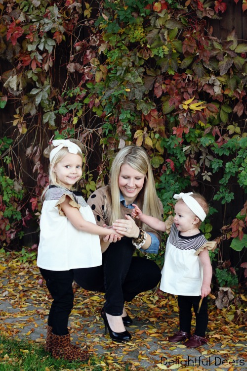 Those outfits are so adorable on your sweet girls! Love the look you put together too. 🙂 Great neutral tones.
